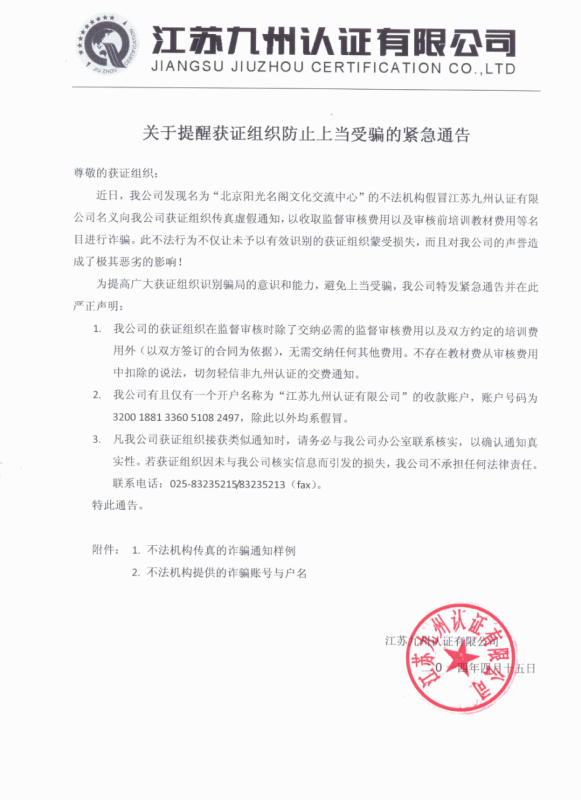 關(guān)于提醒獲證組織防止上當受騙的緊急通告/ Unclassified Documents